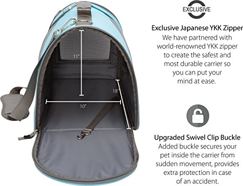Pets love this soft carrier with its padded interior. Hard-floored carriers make pets feel unsteady as the carrier is jostled about, increasing their stress level. Many owners have reported that their pets who hate other carriers are happy to settle down and take a nap in this one. But although it's soft, light weight, and can be folded flat for storage, this carrier is sturdy and durable.