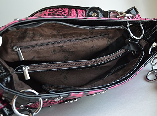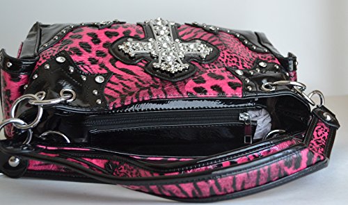 -. Brand : Stony West -. Color : Hot Pink -. Department : womens -. EAN : 0769134755100 -. Feature : Silver tone rhinestone cross, studded and rhinestones accent on front / Top zippered closure, Interior middle zippered divider with two compartments, wall zippered pocket and two slip pockets / Back gun concealed carry zippered pocket, slip pocket / Exterior two magnetic flap pockets with contrsting trim and accented with studs / Dimensions: 12 1/2" x 8" x 4 1/4" -. PackageQuantity : 1 -. ProductGroup : Shoes -. ProductTypeName : HANDBAG -. Size : Medium -. Title : western black hot pink leopard animal handbag cross purse -. UPC : 769134755100