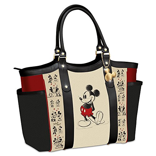 -. Feature : Share in the magic of Disney's first sweethearts with the Mickey Mouse and Minnie Mouse Love Story Tote Bag, an original fashion design from The Bradford Exchange / Licensed from Disney / This stylish shoulder tote bag is expertly crafted of P.R.Inted poly twill in cream, black and red with black faux leather trim and handles. Imported. / The front center panel features a portrait of Mickey Mouse, while the back center panel displays a portrait of Minnie Mouse / For important information regarding sales tax you may owe directly to your state, please check our Storefront Page by clicking on the storefront link above, and then selecting the Policies Tab