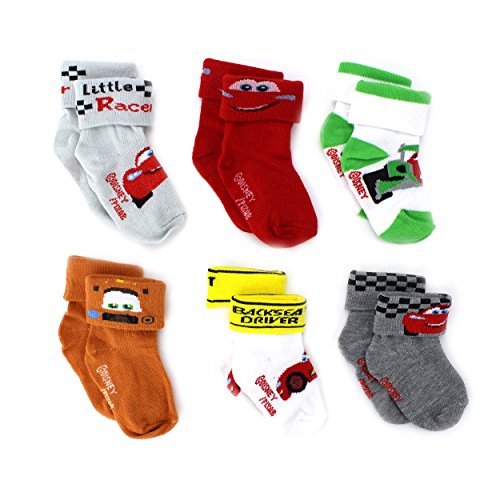 Disney Cars Baby 6 pk Socks (6-12M, Backseat Driver Turncuff)