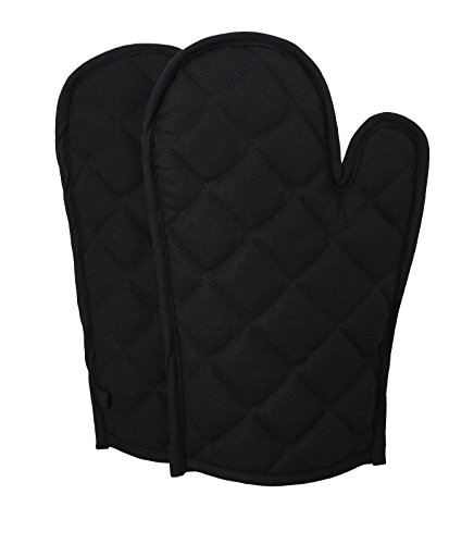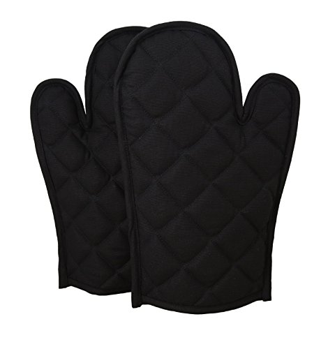 Shalinindia Cotton Oven Mitts Set of 2 Quilted Cooking Gloves,OG02-Black,Black,8 x12 Inch