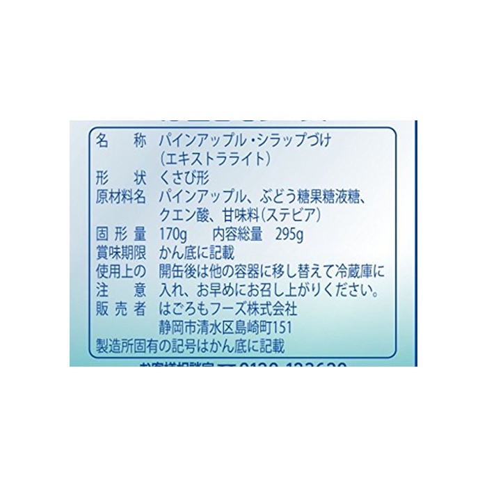 원본상품명: はごろも 甘みあっさりパイン 295g×4缶 (4077)