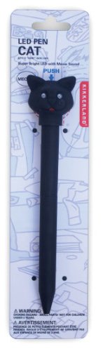 -. Feature : Press down to make meow sound / Super bright LED light / Black ink / 3 button cell batteries included / Measures 6-Inches long / Kikkerland Cat LED Ballpoint Pen, BBlack ink