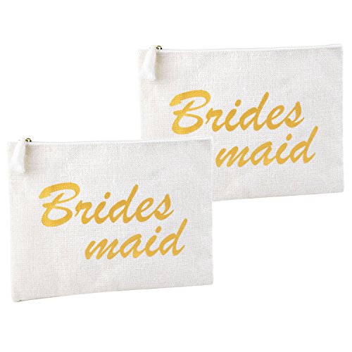 "Maid of Honor" printed with gold script. All time classy and elegant, absolute stylistic gift choice to bride. Perfect wedding day bag to carry your cash, make-up or ID and other small accessories .