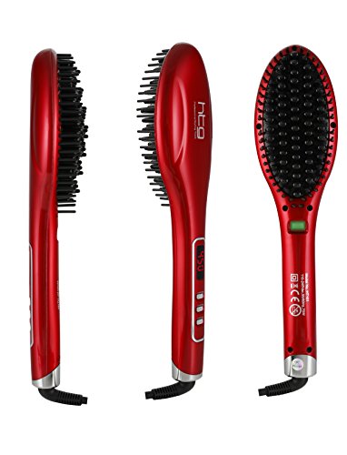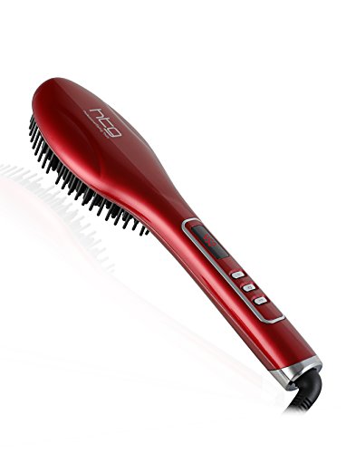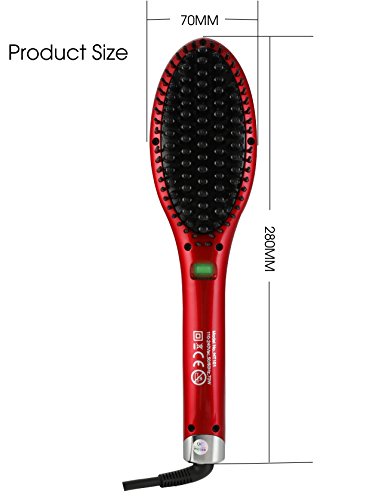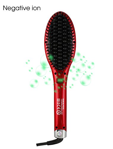 HTG Electric Hot Brush Iron Brush Hair Straightener with Ceramic Negative Ion ionic Electric Comb Ceramic Keratin Brush iron Salon Care Products (RED)