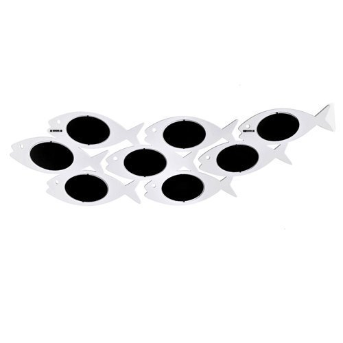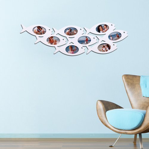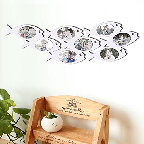 -. Title : Adeco Decorative White Wood Wall Hanging Collage Picture Photo Frame, School of Fish, 8 Oval Openings, 4x6"