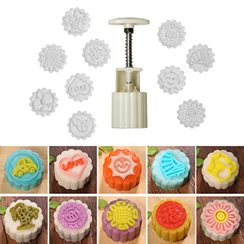 Studio : DLT Publisher : DLT Product Description Instructions: Round Mooncake Stamp Diameter: Approx. 1.7 inch Material: Food Grade ABS, BPA free. Make great birthday gifts, and presents to brighten any ordinary day. Have your own cake mold, enjoy the fun of DIY, take 10 different kinds of comfort food home. Each about 50g / 1.8oz