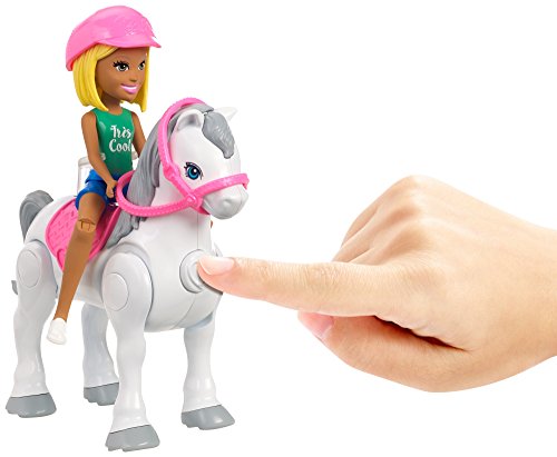 The 4-inch Barbie doll is ready to ride with flexible hips and knees that allow her to sit and a head that bobbles to add laughter to the ride. Her removable helmet matches her pony's saddle and removable bit