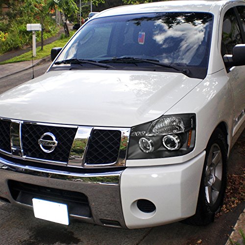 Brand new in original packaging.Exactly the same as shown in the picture!Comes with both headlights.H1 light bulbs included for HIGH/LOW beam. High quality black projector headlights w/ dual halo rings & LED lights.These lights are made by an OE approved and ISO certified manufacturer with the quality meet or exceed all OE standards. Do not come with installation instructions.Professional installation highly recommended.Fitment : 04-15 Nissan Titan / 04-07 ArmadaFeature