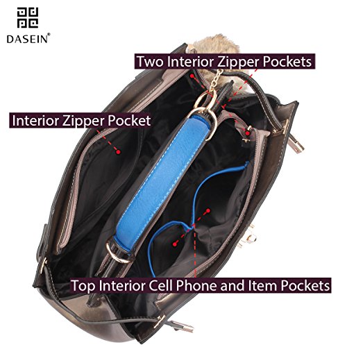 ? This Dasein bag measures 15 x 10.5 x 6 inches. We suggest comparing it to a bag you already own to make sure it's just the size you want ? Quality guarantee by Dasein: we take quality seriously. You won't get bags that fall apart within weeks or signs of less-than-perfect craftsmanship that are common for handbags in this price range. ? Don't be fooled by its chic, compact look; the highly organized and spacious interior will fit your wallet, iPad, phone, keys, sunglasses, makeup, and more! ? We take extra care to eliminate chemical odors that are commonly found with faux leather bags. If you still detect a smell, unzip the bag and leave it in a ventilated environment for a couple of days. About Dasein