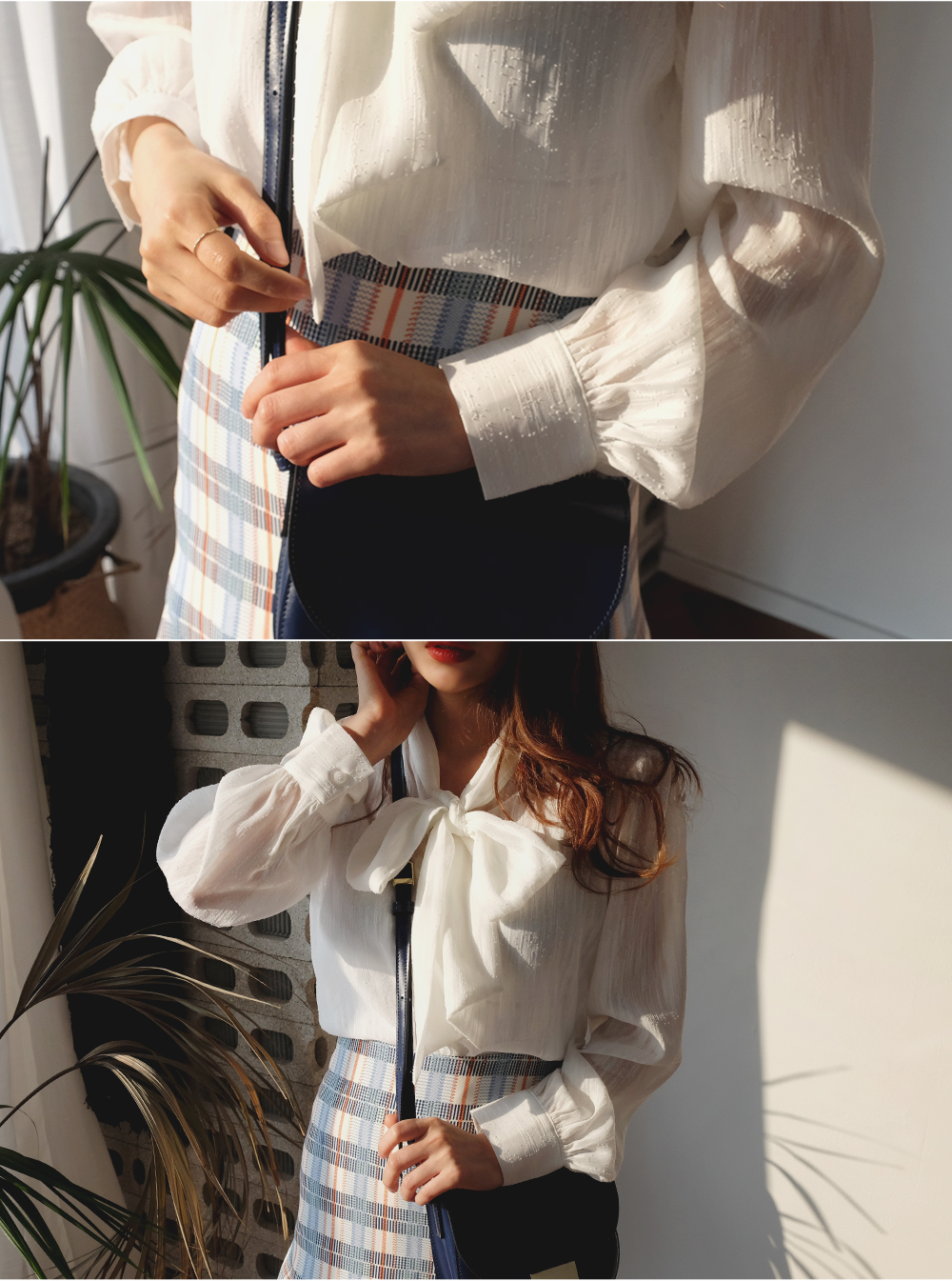 리본 타이 블라우스