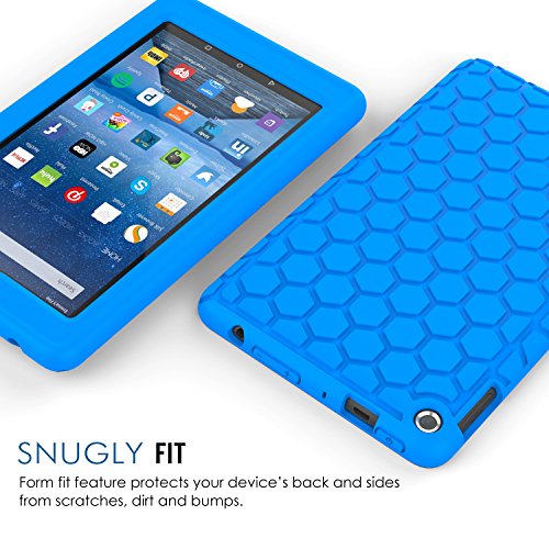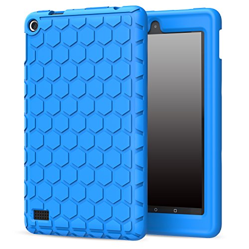 MoKo Case for Fire 2015 7 inch - [Honey Comb Series] Shock Proof Soft Silicone Back Cover [Kids Friendly] for Amazon Fire Tablet (7" Display - Previous 5th Generation, 2015 Release Only), BLUE