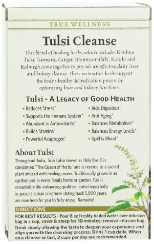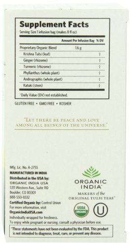 -. Binding : Grocery -. Brand : Organic India -. EAN : 0801541507573 -. Feature : Made with Tulsi, "queen of the herbs", a traditional Indian medicinal herb / Stress relieving, Soothing and relaxing / Abundant in antioxidants / Uplifts mood / Caffeine and gluten free -. IsAdultProduct : 0 -. Label : Organic India -. LegalDisclaimer : Actual product packaging and materials may contain more and/or different information than that shown on our Web site. We recommend that you do not solely rely on the information presented and that you always read labels, warnings, and directions before using or consuming a product. Content on this site is for reference purposes and is not intended to substitute for advice given by a physician, pharmacist, or other licensed health-care professional. You should not use this information as self-diagnosis or for treating a health problem or disease. Contact your health-care provider immediately if you suspect that you have a medical problem. Information and statements regarding dietary supplements have not been evaluated by the Food and Drug Administration and are not intended to diagnose, treat, cure, or prevent any disease or health condition. ABC Wholesale assumes no liability for inaccuracies or misstatements about products. -. Manufacturer : Organic India -. Model : 749721 -. MPN : 801541507573 -. NumberOfItems : 6 -. PackageQuantity : 6 -. PartNumber : 801541507573 -. ProductGroup : Grocery -. ProductTypeName : GROCERY -. Publisher : Organic India -. Studio : Organic India -. Title : Organic India Organic Tulsi Herbal Tea, Tulsi Cleanse, 18 Tea Bags (Pack of 6) -. UPC : 801541507573