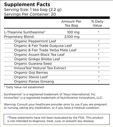 -. Binding : Grocery -. Brand : CogniTea -. EAN : 0013964693973 -. Feature : Energizing tea for mental clarity and focus / No jitters, no headache and no crash / Made with 100mg of L-Theanine suntheanine and 9 other organic teas and herbs to promote steady alertness, concentration and focus / A smart and healthy replacement for coffee and energy drinks, 0 sugar, gluten-free, 0 calories and made in the USA / Great for work, school and studying, running, yoga, general fitness and working out. Enjoy in the mornings and afternoons -. Label : CogniTea, LLC -. Manufacturer : CogniTea, LLC -. Model : 013964693973 -. MPN : 013964693973 -. PackageQuantity : 1 -. PartNumber : 013964693973 -. ProductGroup : Boost -. ProductTypeName : GROCERY -. Publisher : CogniTea, LLC -. Studio : CogniTea, LLC -. Title : CogniTea Productive Energy Tea for Mental Clarity and Focus made with L-Theanine, 20 Count -. UPC : 013964693973