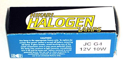 Studio : Higuchi Publisher : Higuchi Binding : Tools Home Improvement Product Description Please update the product description to "Replacement halogen 10W (watt) 12V (volt) bulb/lamp for landscape lighting, fountain lights, audio/visual, photographic equipment, shadow box, desk lamps, bookcase, under-cabinet lighting, pendants, portables, chandeliers, signs and displays. Average bulb life 2000 hours, size T2.5, replaces these bi-pin base types: G4, Q; T4 bulb shape, clear quartz lense, tungsten filament, 120 lumens, color temperature 2800K, fully dimmable to 0%, 100% mercury free." 0
