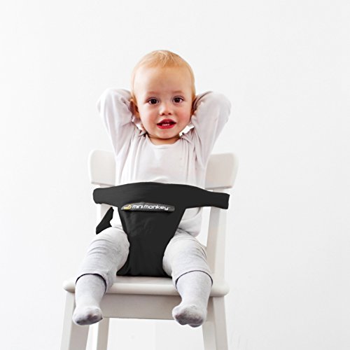 Studio : Minimonkey Publisher : Minimonkey Binding : Baby Product Product Description Minichair - makes a kid's seat out of every chair The Minimonkey Minichair is a handy seat for your child. With the Minichair you can turn a regular chair into a kid's seat in a snap. The Minimonkey minichair is a kind of "harness" that will transform every seat, including a high chair, into a stable baby seat. The minichair has an ingenious patented design with 3 adjustable straps at the back of the chair that come together in a 3-point buckle. You use the two horizontal bands to put the baby in the chair and the vertical band, that runs in between the legs to the back of the chair, to make sure the baby will sit upright and does not slide down. Monkeyproof It is also very easy to use, you put the harness on a chair, put the baby in it, click the 3-point buckle, pull the straps and ready! It's compact design makes it a product that you will bring everywhere with you because it fits easily in your diaper bag. Product features Flexible: fits almost all regular chairs, but also various children's chairs (high chairs), for example the Tripp Trapp Safe: has a unique and patented attachment design and is fitted with a safety, buckle plus an additional safety fastener; Hygienic: made from 100% cotton and can easily be thrown into the washing machine Age: Suited for children from ages 6 - 36 months; Available in 4 colours 0