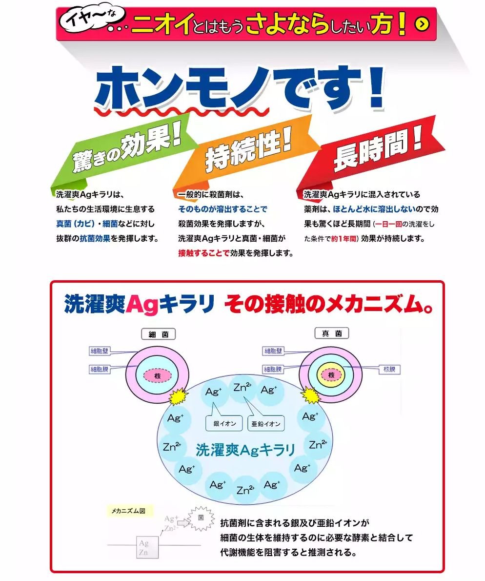 · The power of Ag (silver) which has a strong effect on "eradication" "antibacterial" "deodorant" suppresses the occurrence of bacteria on washing tub and laundry and eliminates mold mold stains.