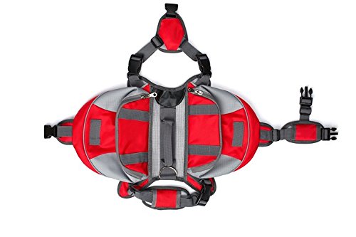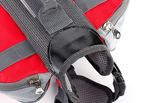 -. Feature : -The pet carry lightweight bag made of Oxford cloth, high quality, sturdy and durable for you and your pet outdoor activity. / -There are 2 big zippered saddlebags on both side,the space is big enough to provide you hold the dog snacks, water, cleaning supplies, also can hold people's keys, wallet, etc. / -It has 2 size for dog M/L and 2 color provide you choose portable to carry, make your camping and hiking with you pet more convenitent. / -Also suitable for guide dogs, police dogs, such as working dogs, can be used in supermarket, market shopping, traveling to transport food, drinks, etc. / -Fully adjustable chest and stomach straps not only allow your pet move its body freely, middle PU mesh also is breathable and ventilated, bring your dog comfy feelings.