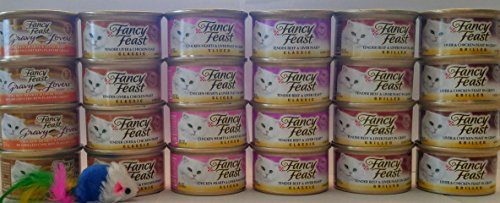 FANCY FEAST CAT FOOD ULTIMATE LIVER FLAVOR VARIETY BUNDLE, (6) FLAVORS (4) CANS OF EACH FLAVOR. (24) TOTAL 3 OZ CANS BONUS MOUSE TOY INCLUDED (COLOR MAY VARY)