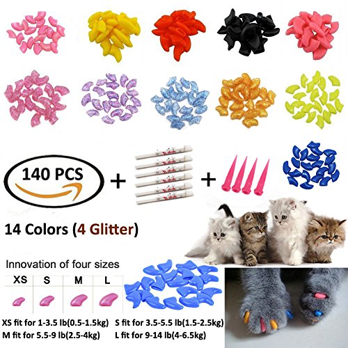 Warm Tips: * For the first time wearing the claw nails, some cats will try to bite them off, please try to distract them, until they get used to their new claws. Please do not worry, this is a normal behavior. *Healthy Cat nail shell will come off Every 4-8 weeks in normal situation. So you need prune the nails and replace nail sets every eight weeks. In addition, the cats' nails have scalability, it is recommended that you leaving a little gap out when stick the nails, so that cats nails have Activity space.