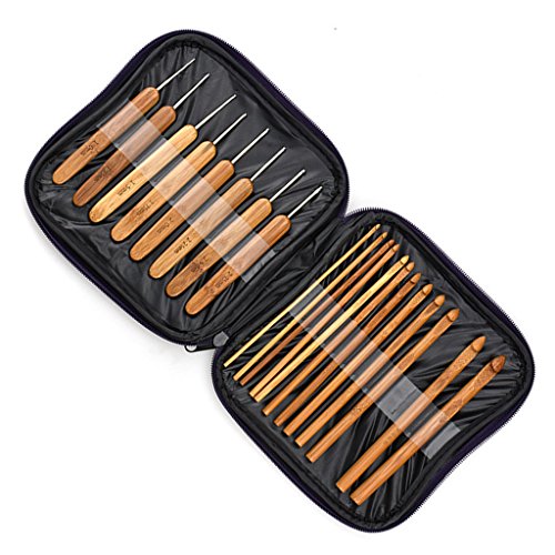 Bamboo Crochet Hook Set of 20 pcs With Case 1.0mm to 2.75mm Knitting Needles Kit Variable Size Complete Needle Yarn Kits Comfortable Handles to Grip Crochet Hook Thin and Bulk Yarn Sewing Accessories