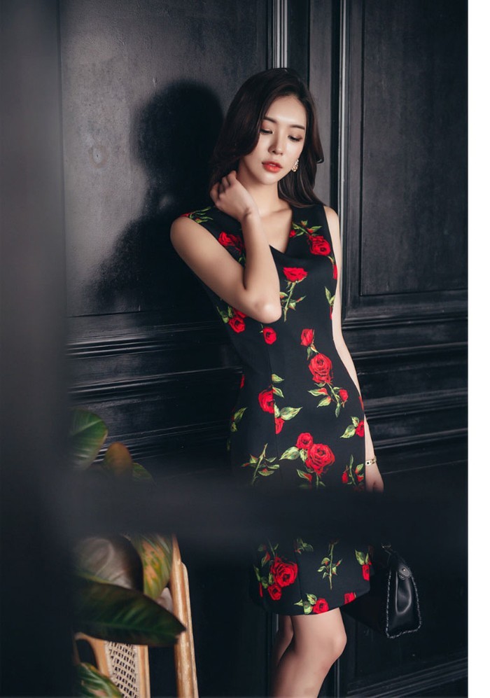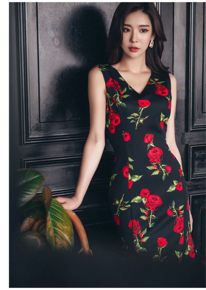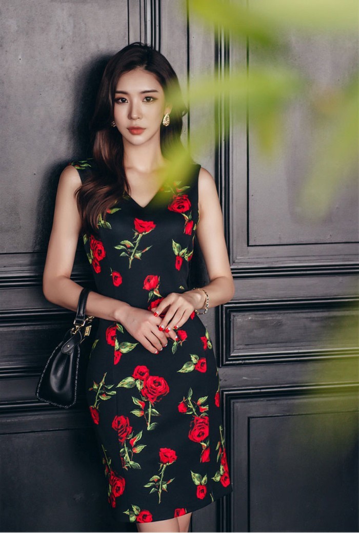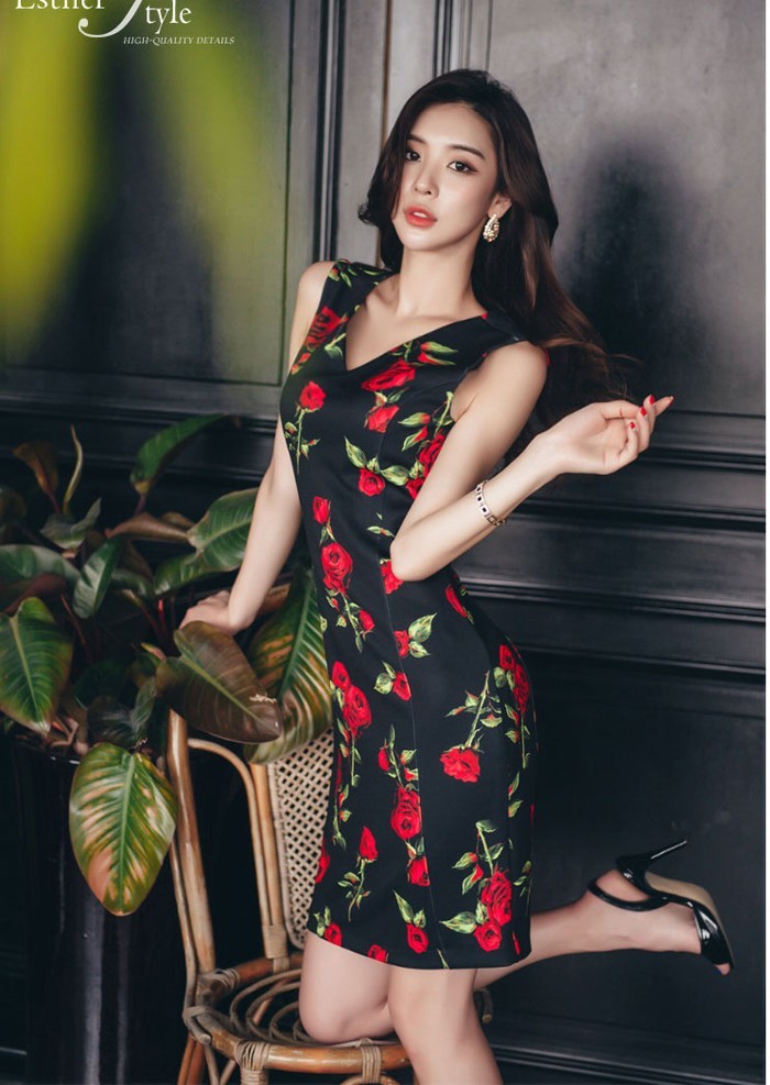 商品名:ワンピース 服 きれいめ タイトワンピース ミニ丈 花柄 フラワー ノースリーブ