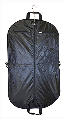 Product Description Take your dress clothes with you confidently on vacation with this stylish garment bag! This piece of lightweight luggage is great for jet setters and can be used for a quick, close by staycation or for a weekend excursion to your favorite retreat. Made out of durable 600 Denier Polyester fabric in a chic print. This garment bag folds in half and can be hung by its metal hook. The interior of this bag features multiple zipper pockets to hold shoes and accessories. Perfect for transporting cheer uniforms or theatre costumes to and from while keeping them clean and wrinkle free! Organize your closet and keep delicate, high quality items neat and pristine. 0