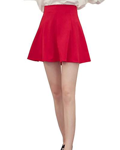 -. Title : HAPPYJP ミニスカート フレアスカート 無地スカート プリーツスカート ハイウエスト Aライン レディース ゆったり ブラック レッド