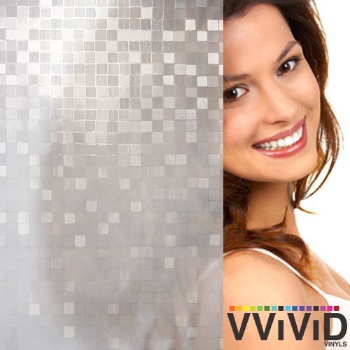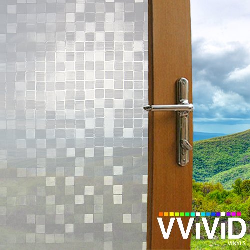 Brushed Glass Square Static Cling Privacy Film Decorative Window Vinyl Decal for Bathroom, Kitchen, Home, Office Easy DIY Easy-Install Adhesive-Free (17.75" x 75")