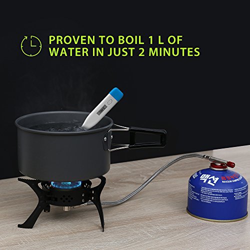 HIGH ENERGY EFFICIENCY: Proven to boil 1 L of water in just 2 minutes in twice the speed of normal stoves; boils 60 bottles of water with a 15.87 oz canister, while other stoves only boil 40 bottles; reduces energy consumption by 30%