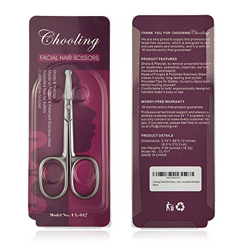 Chooling Facial Hair Scissors (Made of Forged & Polished Stainless Steel) - Safety Hair Scissors for Eyebrows, Eyelashes, Nose hair, Ear hair, moustache and beard...