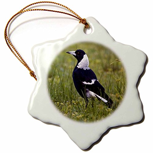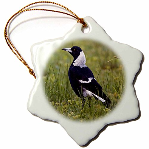 3dRose orn_84007_1 Black Backed Magpie Bird, Eastern Australia NA02 DNO0611 David Northcott Snowflake Porcelain Ornament, 3-Inch