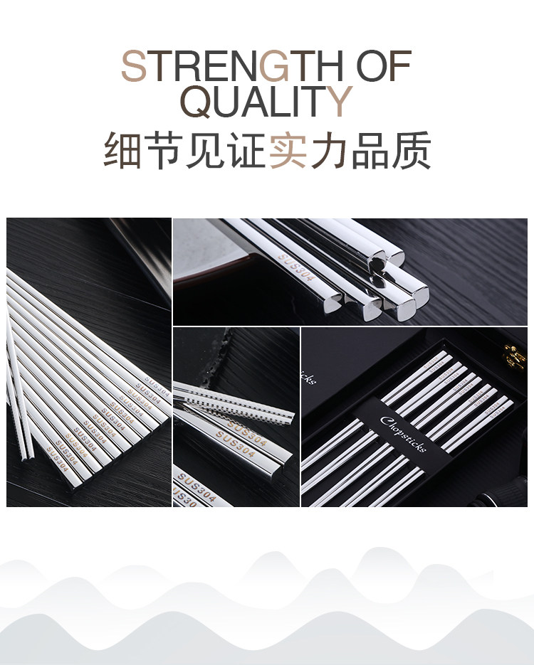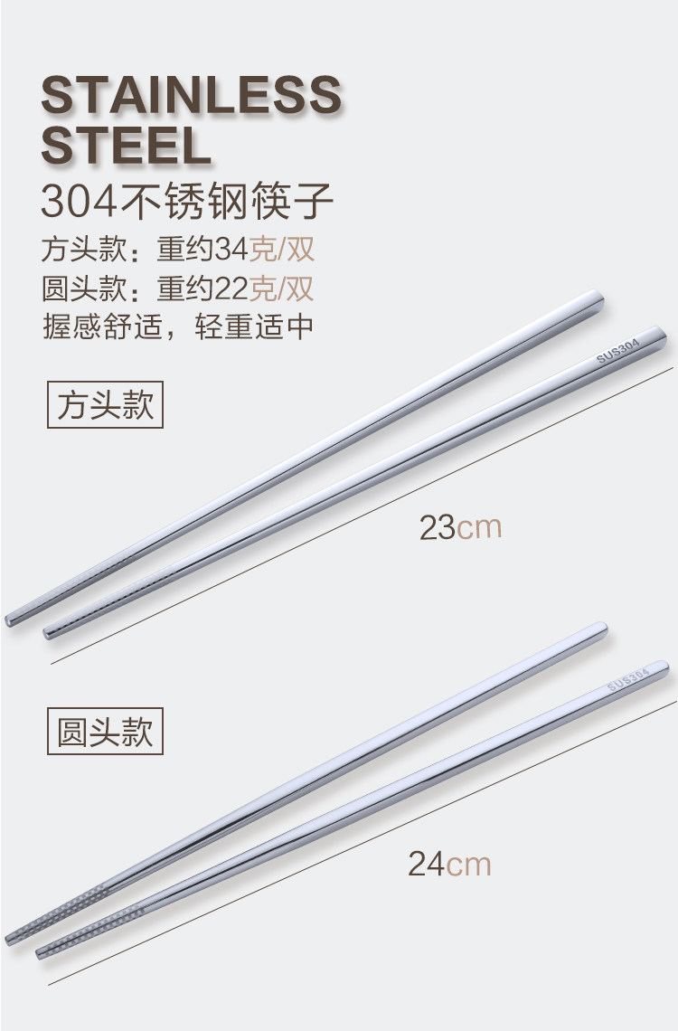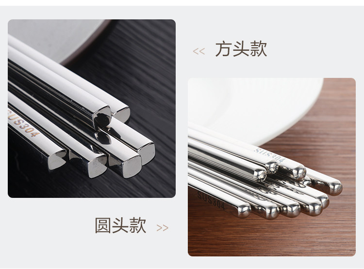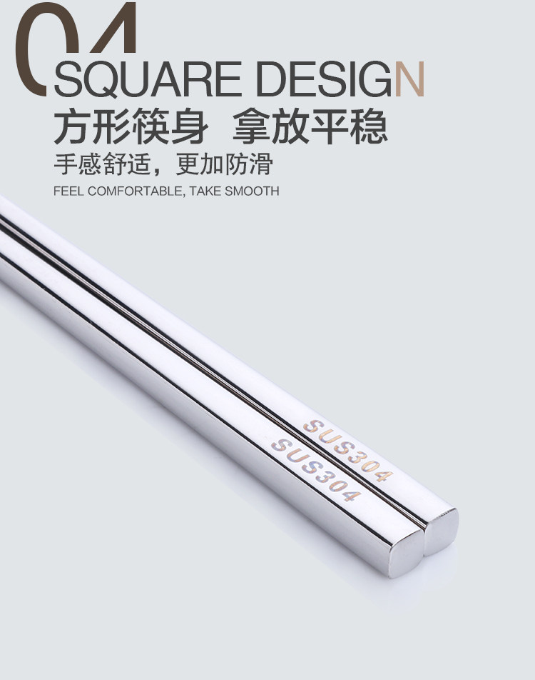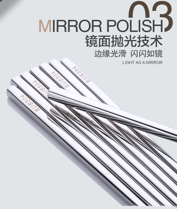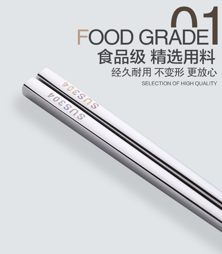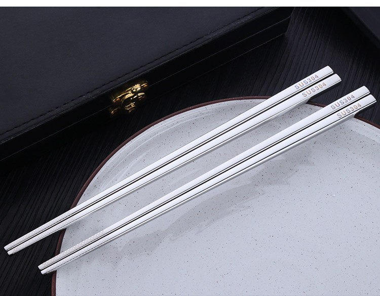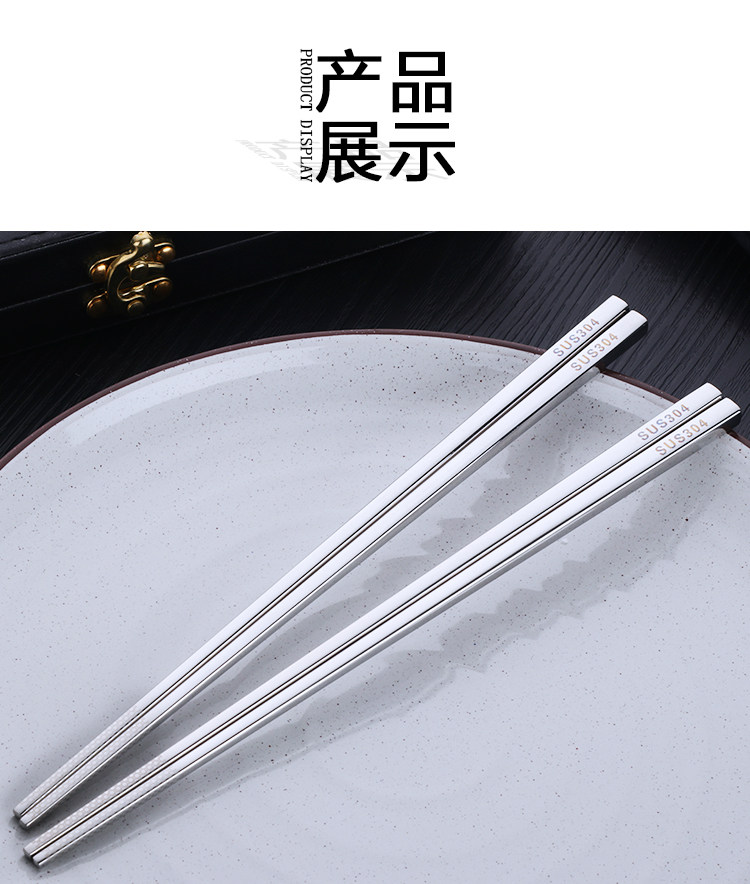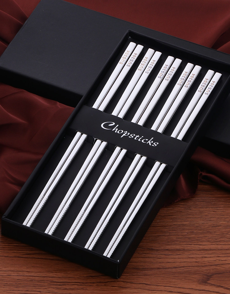 304不锈钢筷子10双套装 金属家用防滑方形快创意空心合金防烫餐具