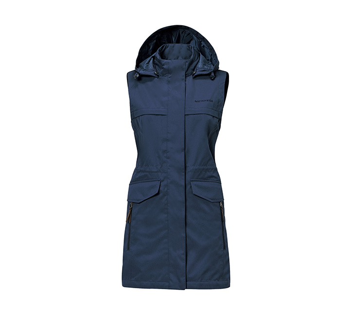 면터치 느낌의 소재를 적용한 캐쥬얼 롱기장 방풍조끼,