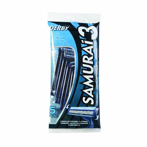 Derby Samurai 3 Triple Blade, Disposable Razor, 5 count