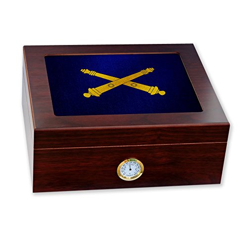 -. Title : Premium Desktop Humidor - Glass Top -US Army Field Artillery, branch insignia