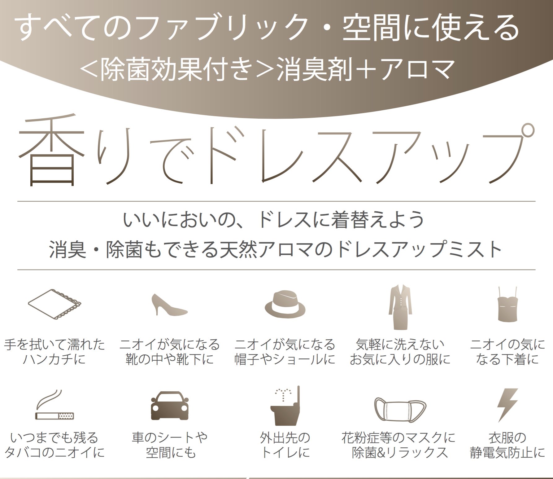It can be used for all fabrics and spaces <With bactericidal effect> Deodorant + aroma.