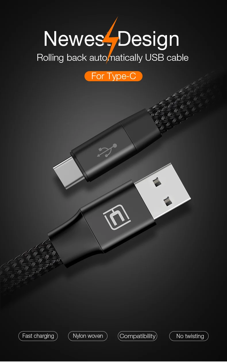 Feature : Automatic Rolling Mobile Phone Cables Type-C