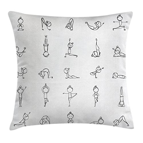 (Ambesonne)/Bedding Bath/Bedding/DIRECT FROM USA/Yoga Throw Pillow Cushion Cover by Ambesonne, Stickman Practicing Different Yoga Moves Stretchi...