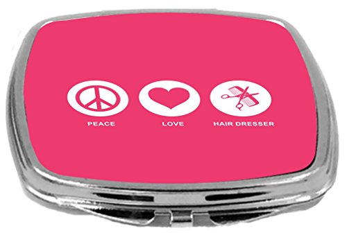 Rikki Knight Peace Love Hair Dresser Design Compact Mirror, Tropical Pink, 2 Ounce