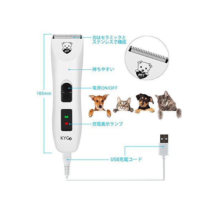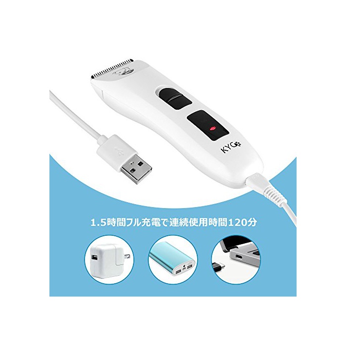 원본상품명:KYG ペット用バリカン 犬猫 ペットトリミング 全身部分カット 電動クリッパ? 業務用 USB充電式 コ?ドレス 低?音低振動 LED充電表示 刈り高さ調整可能 二重刃 切れ味良い ホワイト
