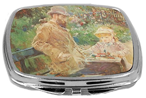 Rikki Knight Compact Mirror, Berthe Morisot Art Eugene Manet and His Daughter in Bougival, 3 Ounce