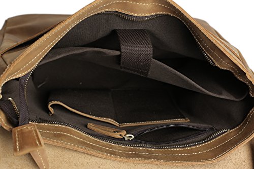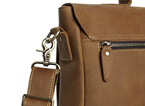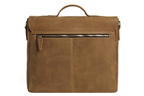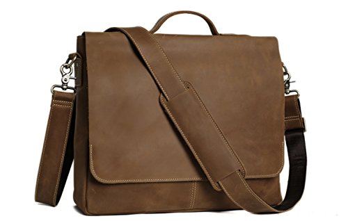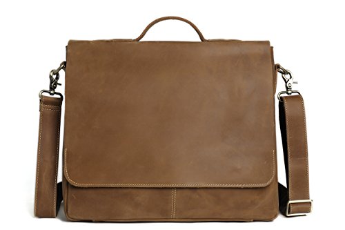 -. Feature : 100% new & made by top layer Crazy Horse genuine cow leather with bronze tone hardware / The front flat with magnetic closure is great for quick-access items, while the Slot pocket (as a padded) main compartment protects a laptop and files / Inside is nicely lined with durable fabric, which fits 14" Laptop, has 1 a laptop sleeve, wall zippered pocket,cell phone holder and wallet holder; Back exterior with zipper pocket / Removable, adjustable, thicken and padded shoulder strap with a length up to 55 inches / This vintage style messenger bag is perfect for using in business, college or other casual occasions