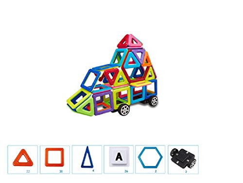 -. Feature : ✔【 Great Value】74 pieces includes 20 squares, 22 triangles, 2 hexagon , 4 Isosceles triangle and additional 26 The letter card. With this combination of components, kids will be well equipped to build any thing they can imagine. / ✔【 SMART PLAYING with IDEA MANUAL 】It is found that kids learn the most while playing. This magnet toy set allows children to explore the world of geometry and foster kids' cognitive development, inventiveness , visualisation ability and fine motor skills. / ✔【 STRENGTH YOUR RELATIONSHIP 】In your spare time, playing with your beloved and your baby, is also a kind of fun. / ✔【GOOD GIFT】Leave some electronic devices, reduce the damage to the eyes.Best gifts for your children,Happy to grow up in the games. / ✔【WARRANTY】Get the Jinon, put your worries aside! If you don't like it for any reason, you can just take advantage of our 60 days warranty. We will replace it or give your money back for any reason.