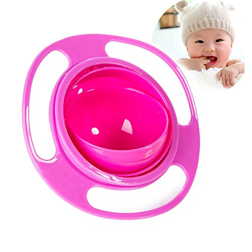 Baby Bowl Children Tableware Non Spill Bowl Toy Dishes Universal 360 Rotate Avoid Food Spilling Food Snacks Bowl Lunch Box Children Christmas Gifts (Rose)