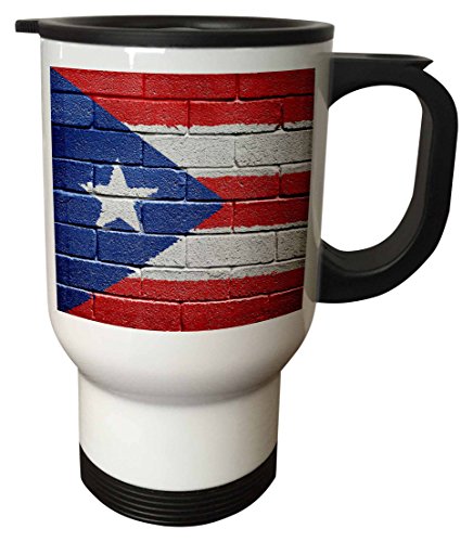 3dRose tm_156970_1 National Flag of Puerto Rico Painted Onto a Brick Wall Rican Travel Mug, 14 oz, White