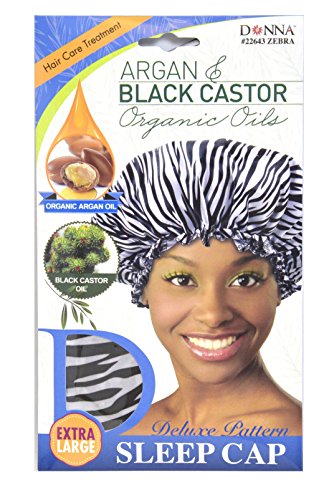 Donna Premium Deluxe Pattern Sleep Cap Extra Large Argan Black Castor Oil Hair Care Teatment Zebra Pattern 22643