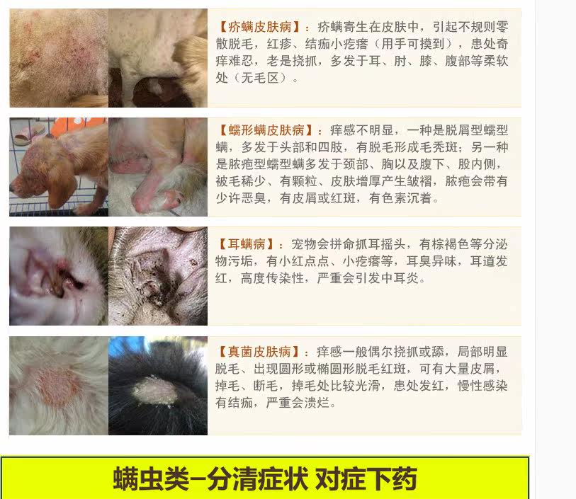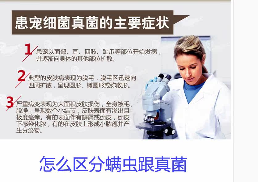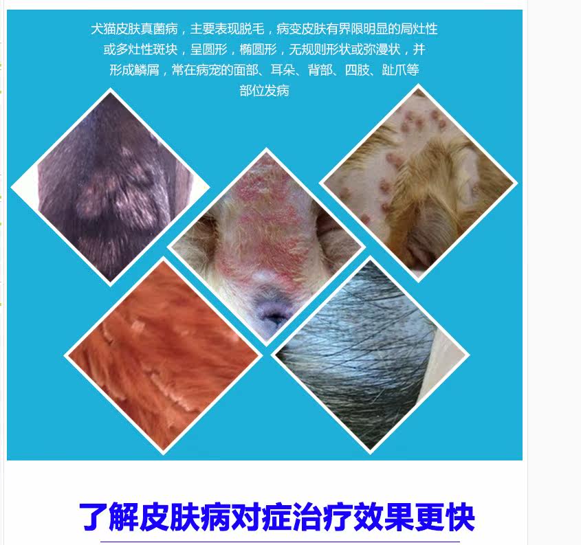 2, a large area of skin infection: for bath, at the dose of 1:50 against the water, such as Peter Finn Dwe 1 ml 50 ml of water (water is milky white does not affect the results), pet bath for 8-10 minutes. No need to rinse (maintain the efficacy of blowwave), then, a 2 day, 5 times for 1 doctor Cheng Huozun still need continuous treatment. Use 2-3 times after the symptoms disappear.