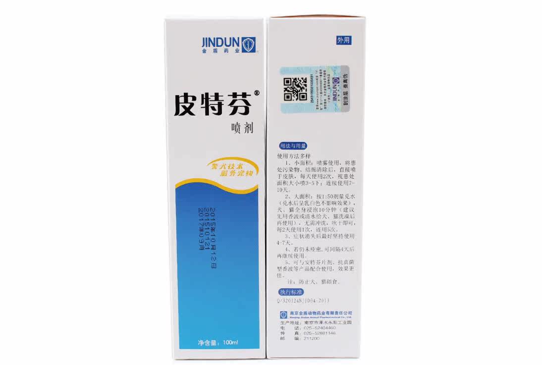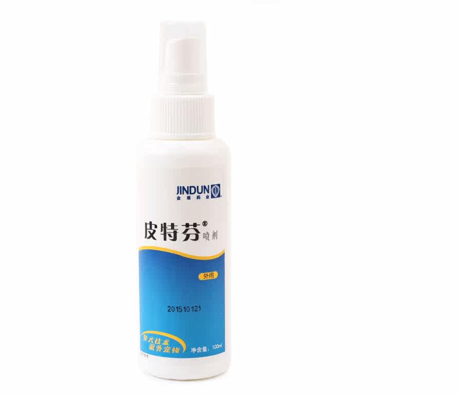 Jindun pitefen sprays, ingredients of butenafine and terbinafine. Pet cures fungal skin disease.