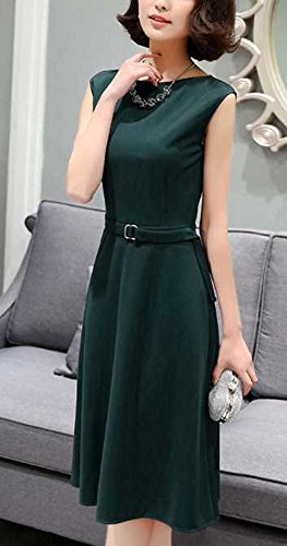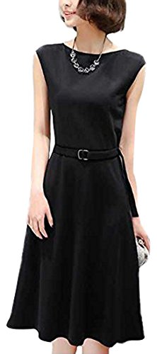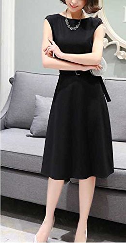 -. Title : ShopXJ ワンピース レディース きれいめ ノースリーブ 膝丈 フォーマル お呼ばれ ひざ丈 ベルト付き 結婚式 卒業式 入学式